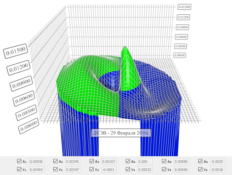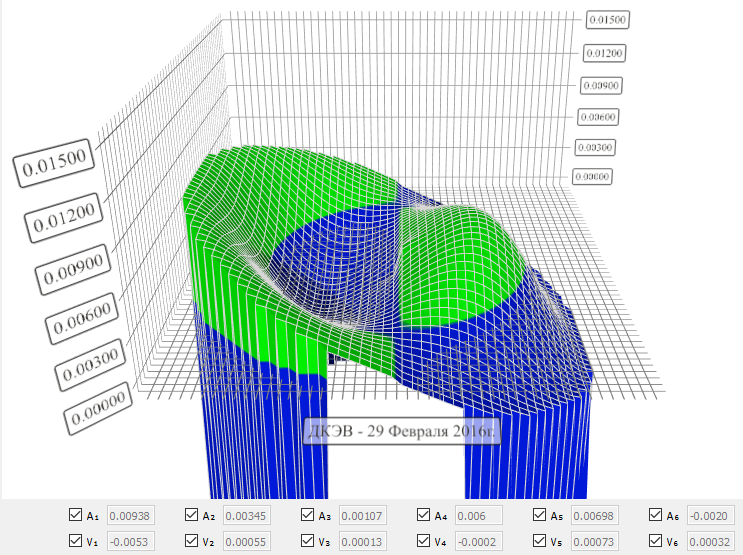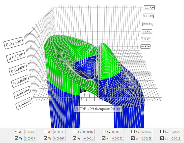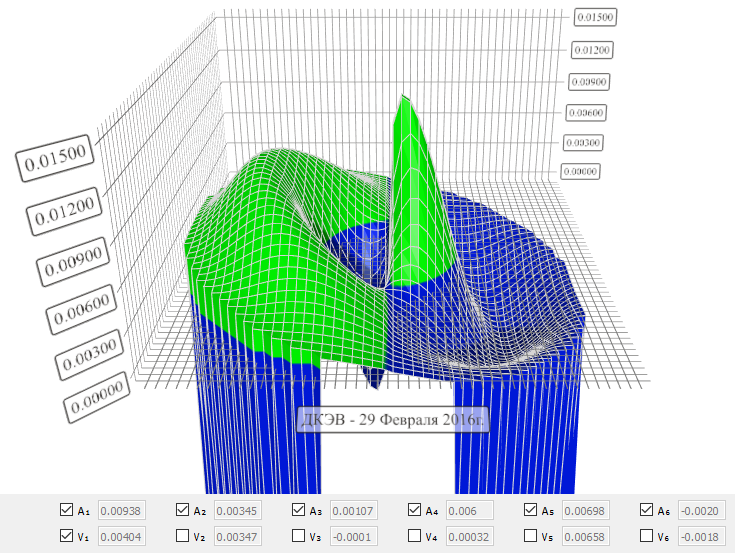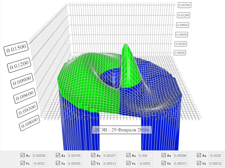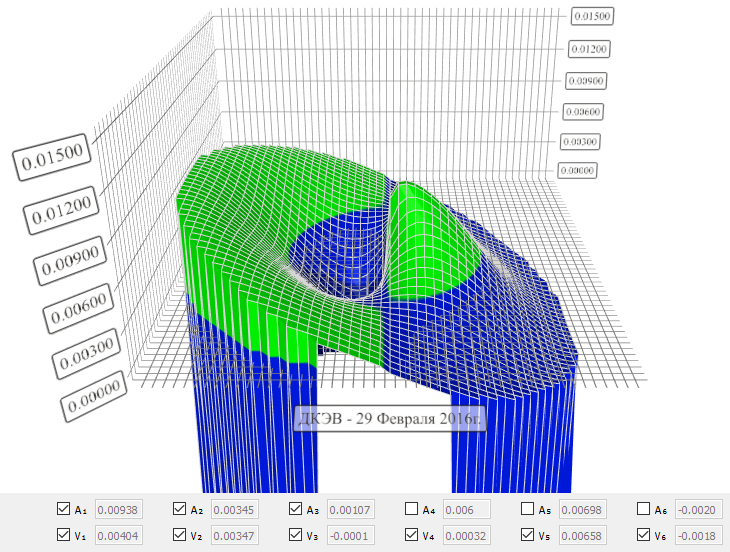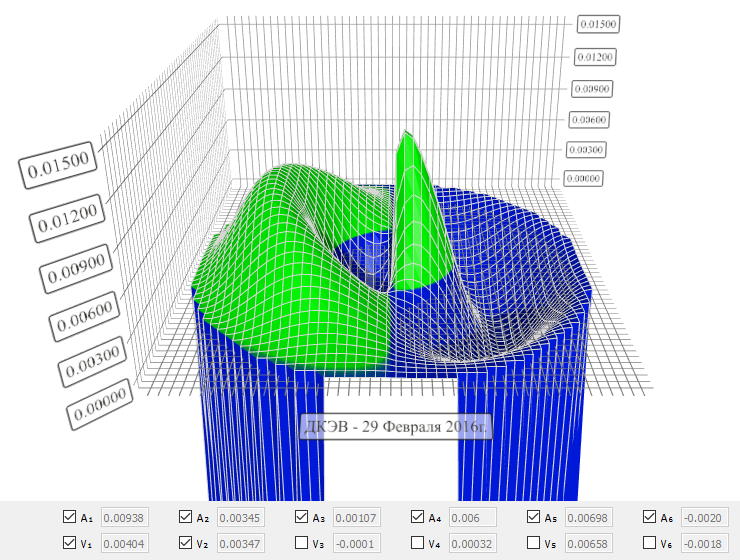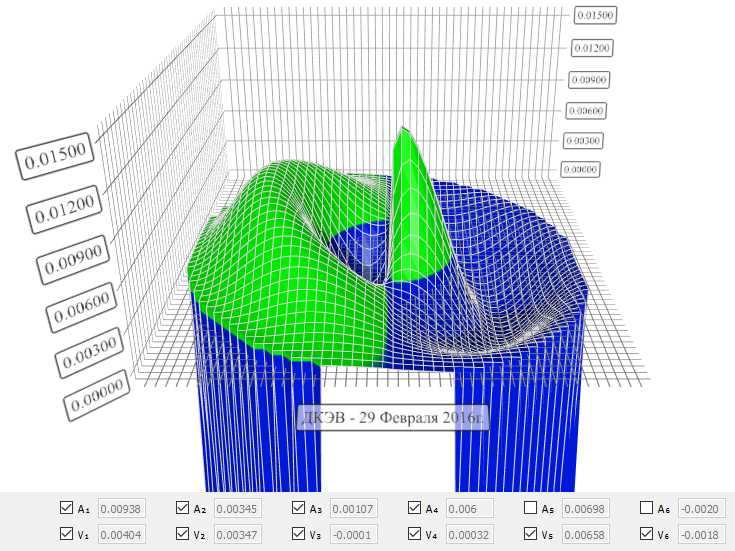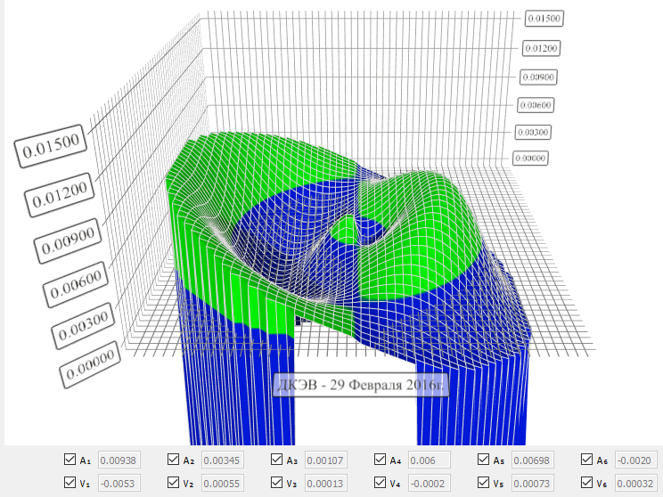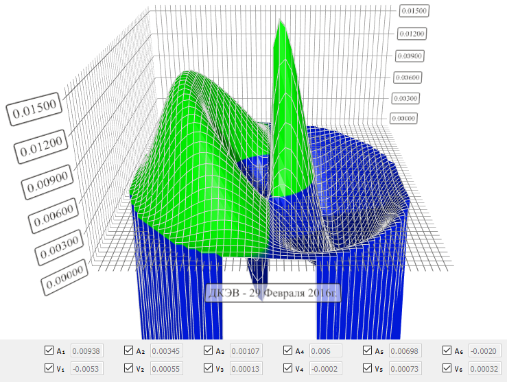 полученные значения гармоническими функциями методом наименьших квадратов и
