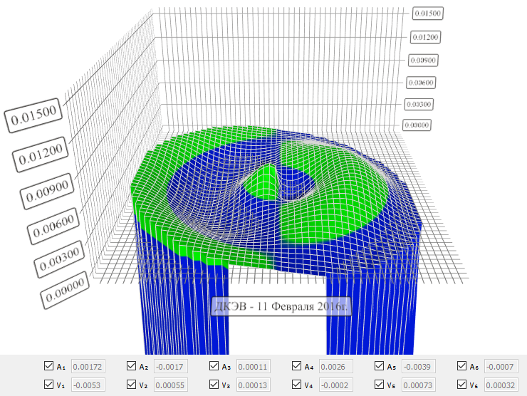 трехмерные деформации поля нейтронов по показаниям дискретно расположенных в