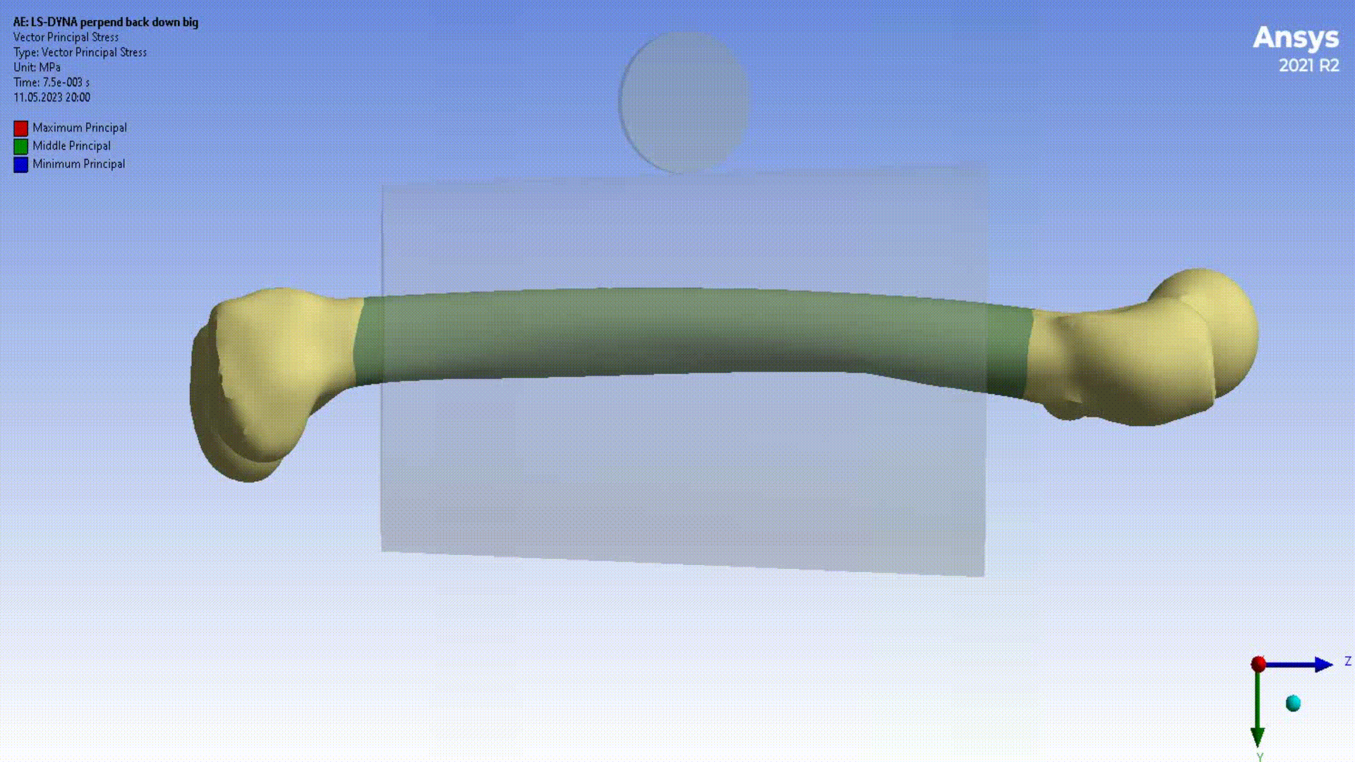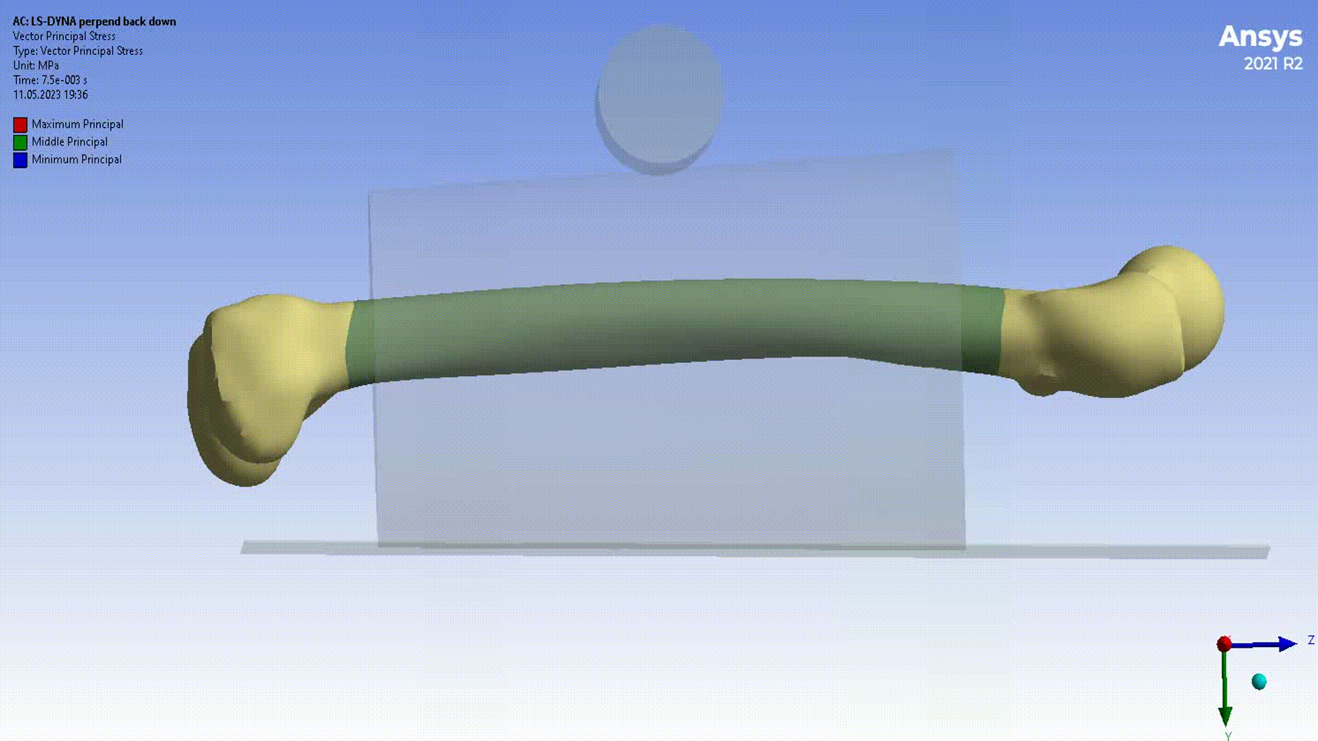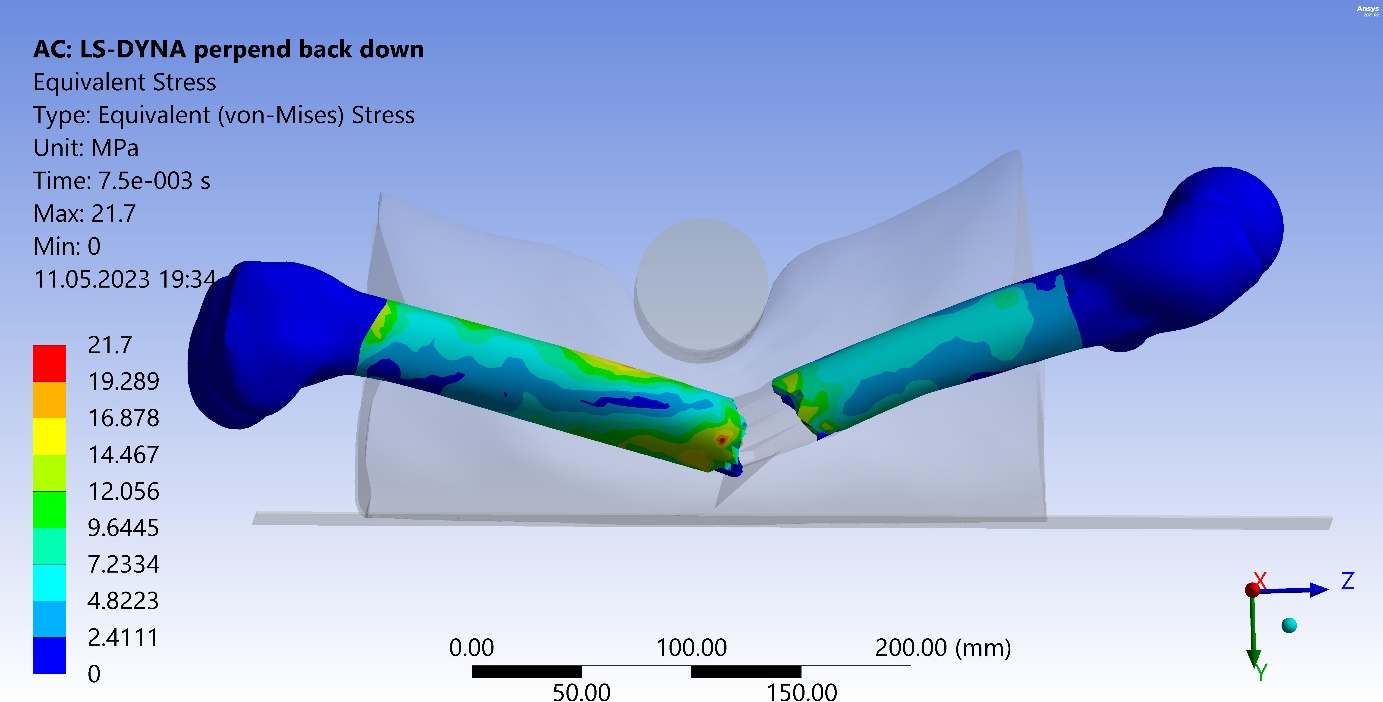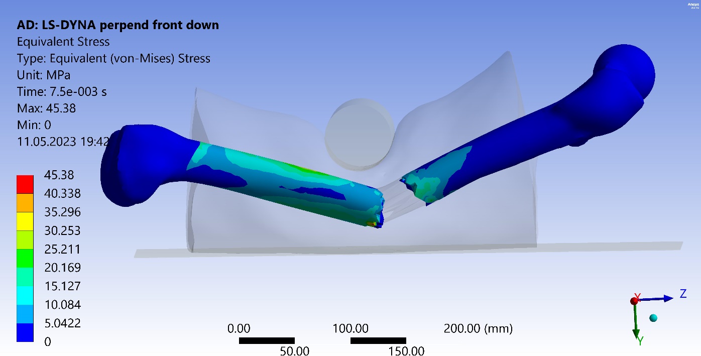 Keywords: femur, impact, complex stress state, finite element analysis, forensic medicine.