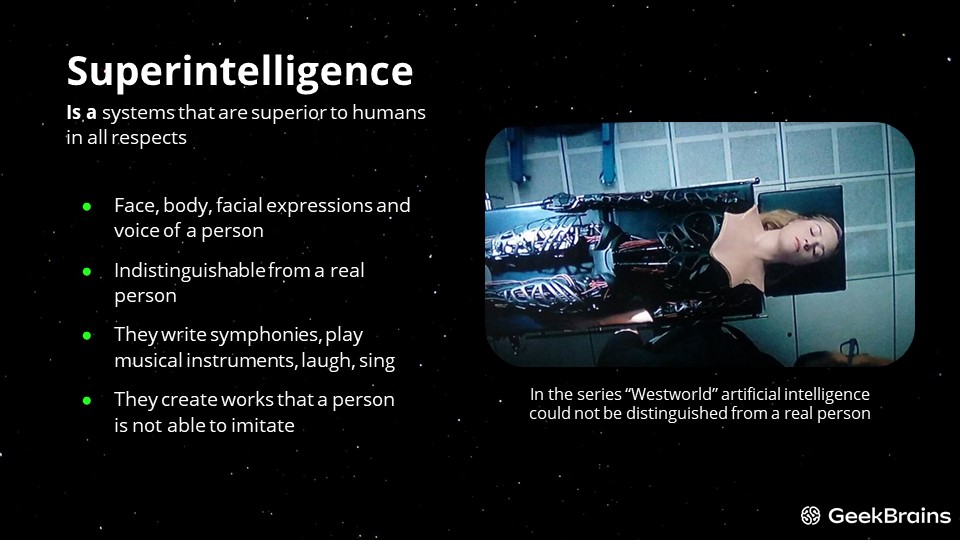 weak AI, strong AI and superintelligence. This means that in terms of the