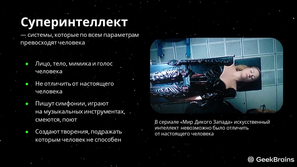 Суперинтеллект же – это человекоподобные