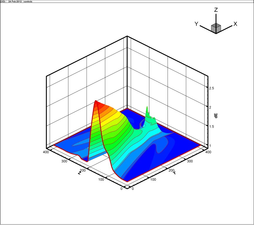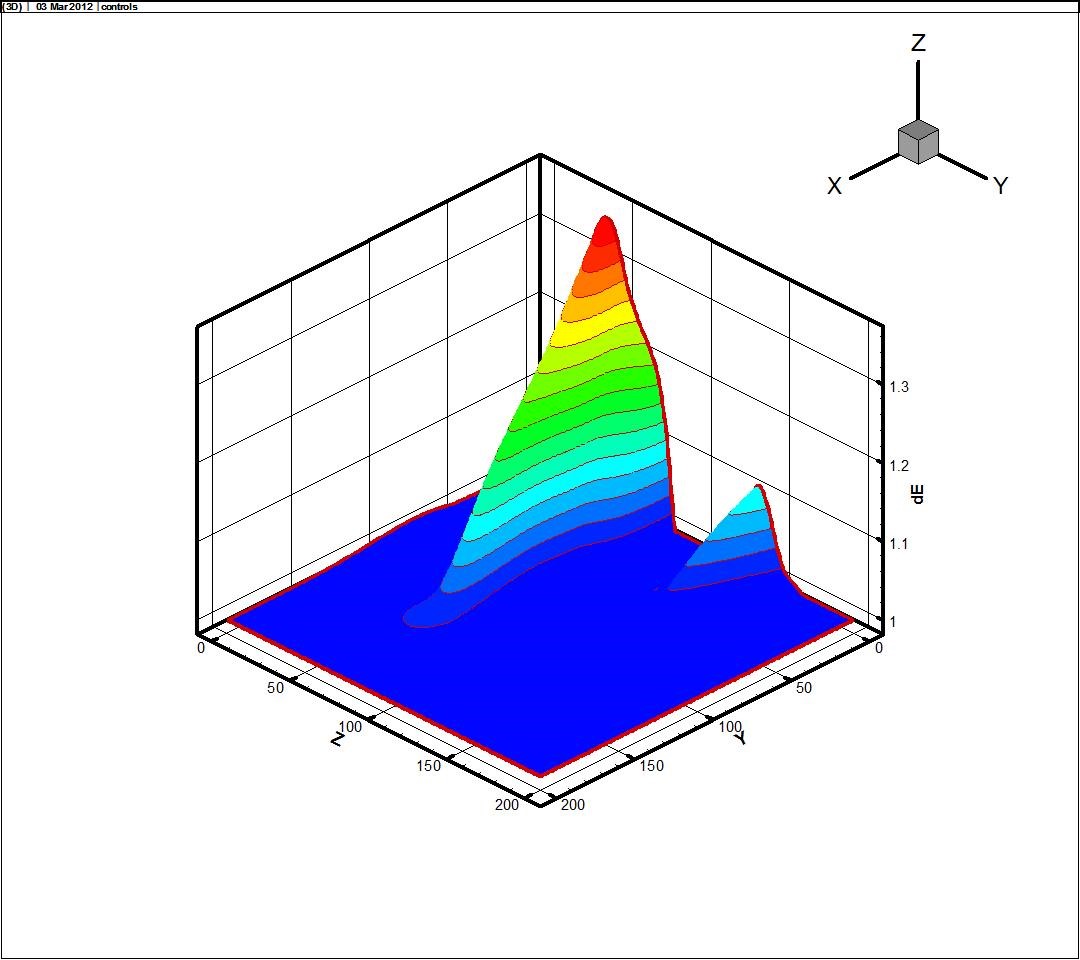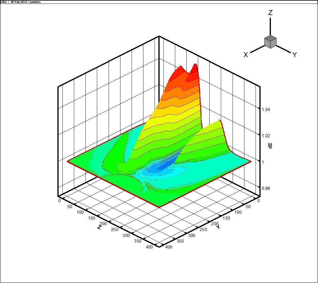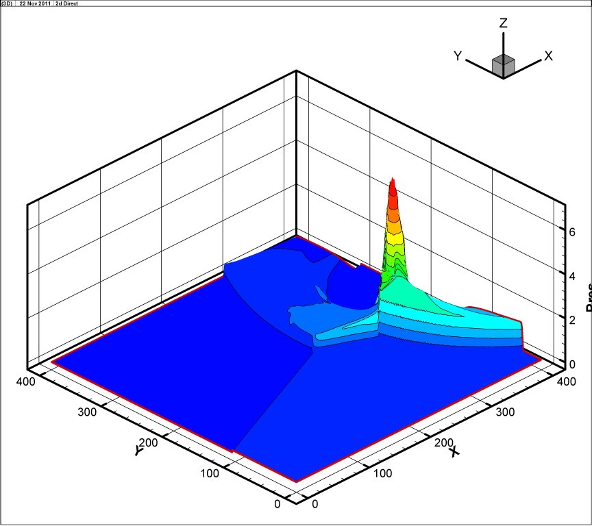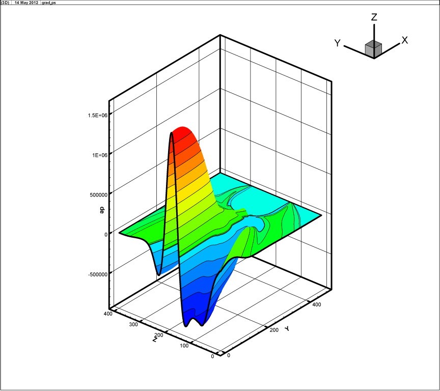 распределение давления в поле течения в трехмерном виде.