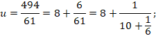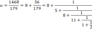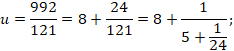 формирование намотки в виде цепных дробей, выделены повторяющиеся элементы,