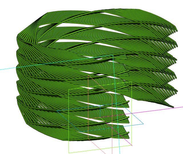 объем, путем перемещения сечения нити диаметром d вдоль траектории 3D спирали,