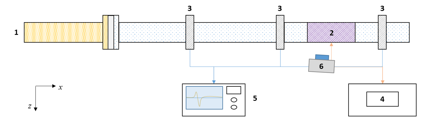 1 — ударная труба, 2 — разрядная камера, 3 —пьезоэлектрические датчики