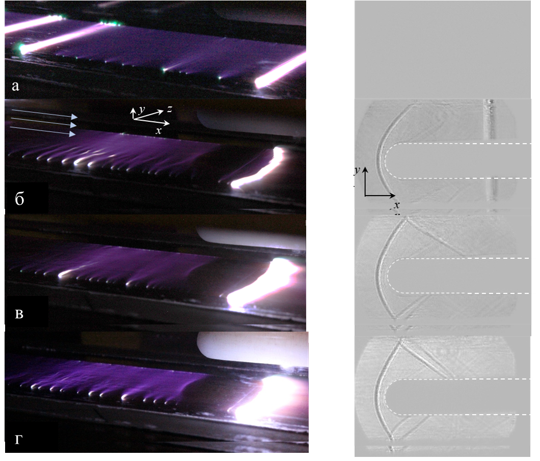системы ударных волн при установлении сверхзвукового обтекания тела в разрядной