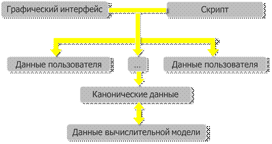 Очевидно, что согласованность интерфейсов объектов сцены возможна только на уровне программных интерфейсов пользователя и ниже. Исходные данные сцены не подлежат никакой унификации, поскольку они являются внешними данными, например, геометрические объекты, подготовленные в CAD программах, оптические свойства объектов сцены, измеренные на специализированных установках, модели источников света, поставляемые в виде набора цифровых фотографий, и т.п. Поэтому все исходные данные должны быть преобразованы в унифицированное представление сцены, используемое в компьютерной системе фотореалистичной визуализации сложных сцен. Как отмечалось выше, данные сцены имеют два основных представления: внешнее представление для работы конечного пользователя (ориентированное на модификацию и создание новых объектов сцены) и внутреннее представление (ориентированное на выполнение светотехнических вычислений и рендеринга).