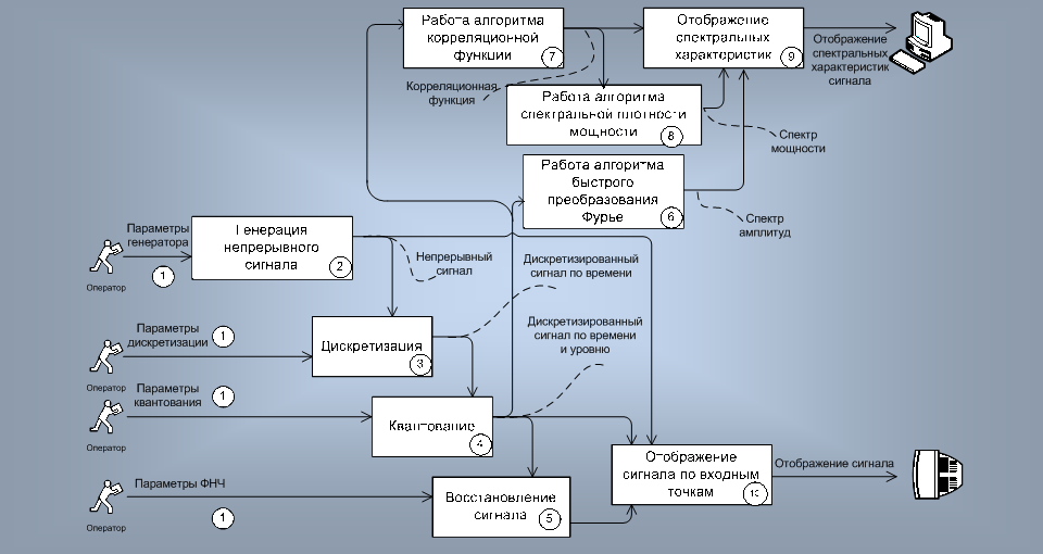 · ЭВМ, реализующие алгоритмы оценки и визуализации спектра сигнала, корреляционной функции и спектральной плотности средней мощности;