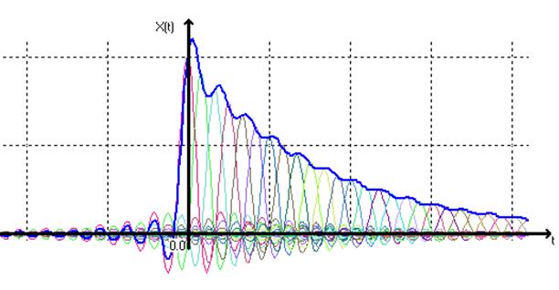Рис. 3. Разложение экспоненциального импульса в ряд Котельникова