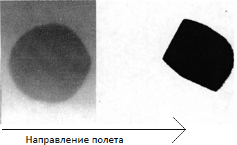 Анализируя природу этих треков необходимо отметить, что при съемке СБФ перемещение фотопленки синхронизировано с перемещением тела в направлении полета, что и подтверждается фиксированием его тени практически без линейных искажений. Самосветящиеся объекты, скорость или направление движения которых отличается от скорости или направления полета тела, на снимке будут формировать трек. Этим объясняется зарегистрированный на рассматриваемом снимке световой шлейф за телом. Он сформирован частицами вольфрама, возникшими в процессе аэротермомеханического разрушения наконечника и интенсивно тормозящимися в свободном полете.