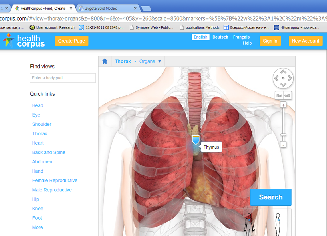 Развитие систем 3D моделирования сделало возможным использование 3D модели пациента, как основы для интегрирования и совместной трактовки результатов его исследования современными методами медицинской диагностики. Исследования и создание систем в этом направлении активно поддерживается компанией IBM, мировым лидером производства суперЭВМ, увидевшей здесь перспективы для массового применения суперЭВМ в реализации технологий на основе больших данных. Результатом завершения проекта IBM 3D Avatar стали три новых технологии, поддерживаемых новой фирмой Nhumi Technologies (2009, www.nhumi.com, читается как New Me). По смыслу – это новый трехмерный Я, построенный от начала до конца на трехмерном образе пациента (3D-аватаре конкретного человека), его медицинских исследований, 3D планировании и наблюдении процесса лечения. Первая технология Study Insight – сервис интеграции данных различных исследований пациента с возможностью коллективного Интернет-доступа к ним врачей и проведения телеконсилиумов по пациенту. Технология Visual Health – сервис навигации по 3D модели анатомии человека (около 3000 объектов) для врачей с любого стандартного web-клиента с привязкой клинических данных к органам, образно говоря, - трехмерная медицинская карта пациента (Рис.7).