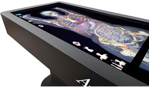 Для медицинских технологий, использующих задачи 3 и 4, найдено интересное прикладное решение, получившее название Виртуальный анатомический стол (Dissection Table). Впервые такой стол был передан в Стэндфордский университет (Stanford Uni.) фирмой Anatomage Inc. (www.anatomage.com) в 2011 для экспериментального использования и развития. Главной идеей стола было соединение 3D визуализации индивидуальных данных томографии с параметризованной моделью анатомии (Рис.9).
